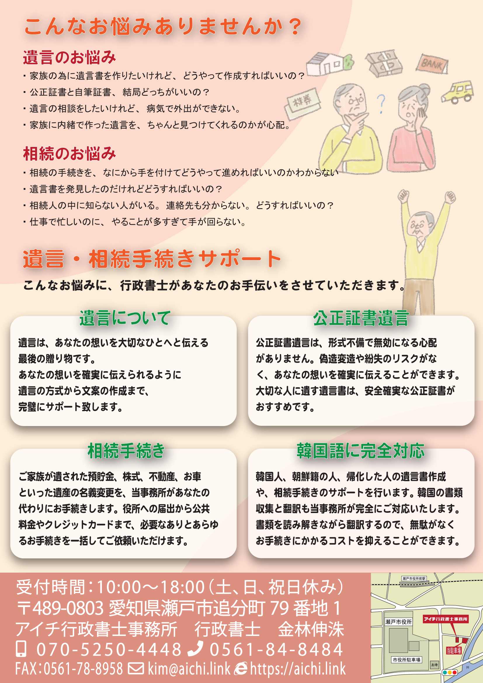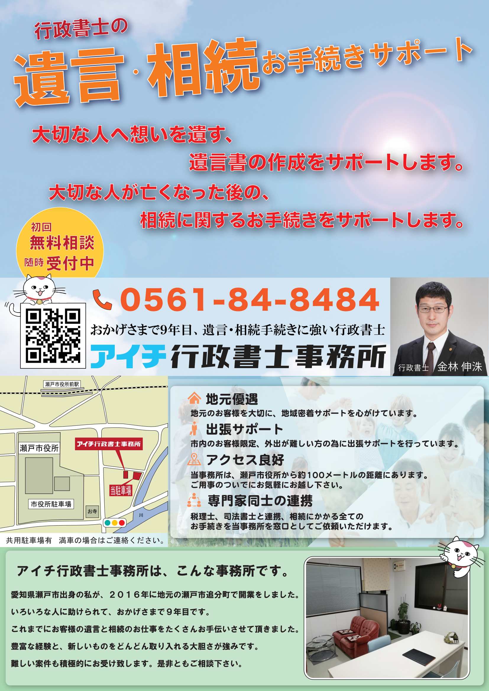 瀬戸市出身の行政書士が、2016年に開業をしました。いろいろな人に助けられて、おかげさまで9年目になりました。様々な案件に対応してきた経験と、新しいものを積極的に取り入れる大胆さが強みです。難しい案件も積極的にお受け致します。